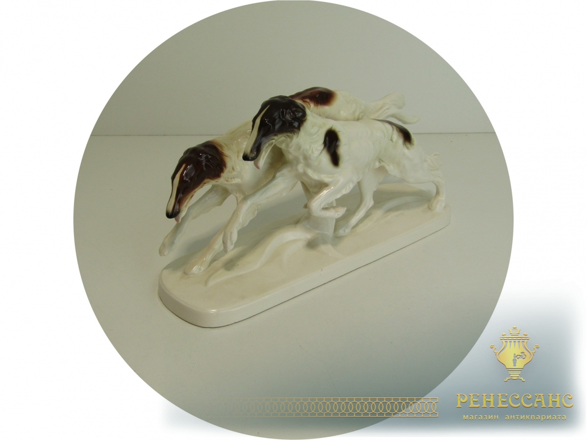 Фигура, статуэтка старинная "Собаки Борзые" №13564Клеймо на фото. Германия?Высота 17,5 см, длина 34 см
