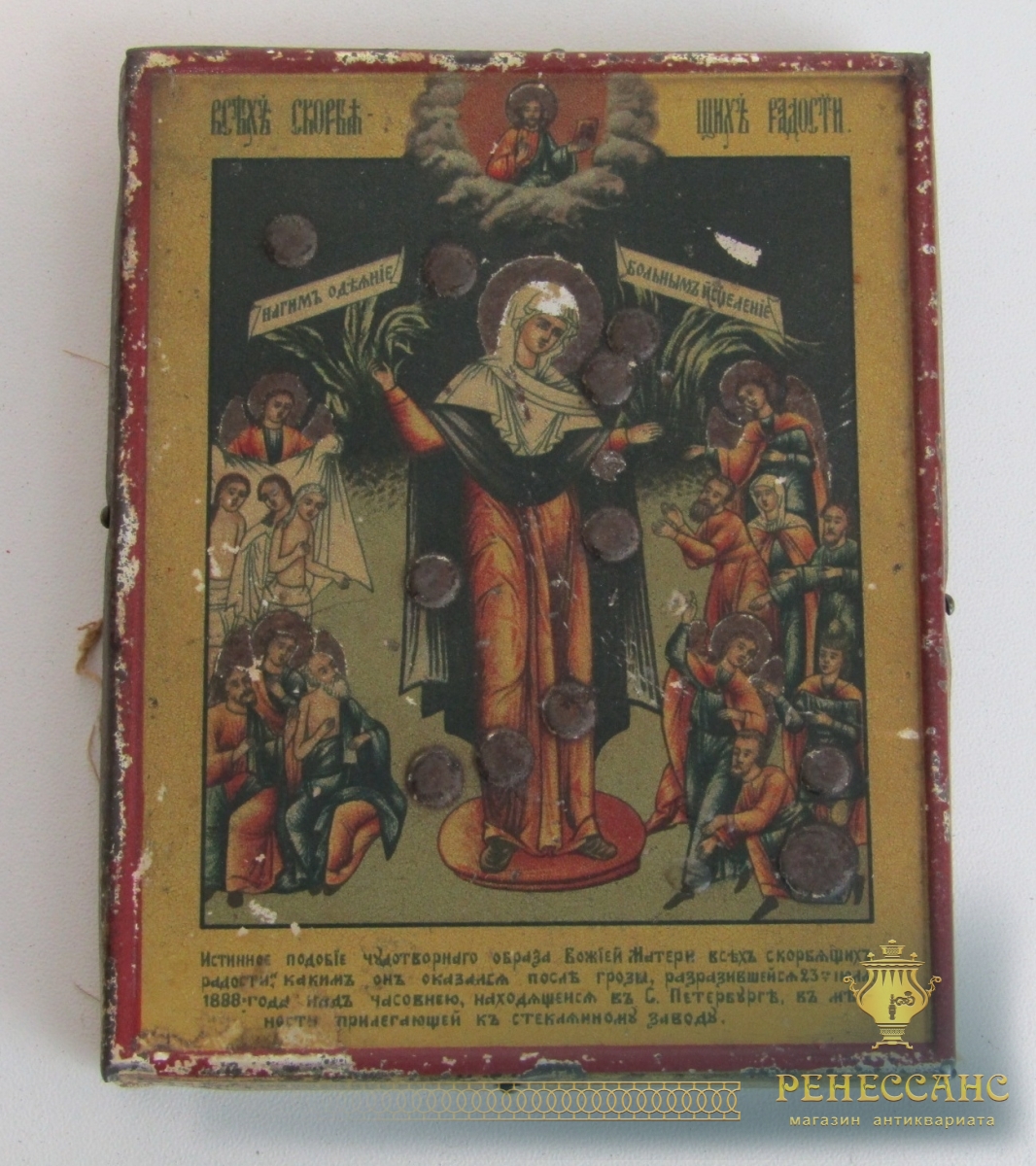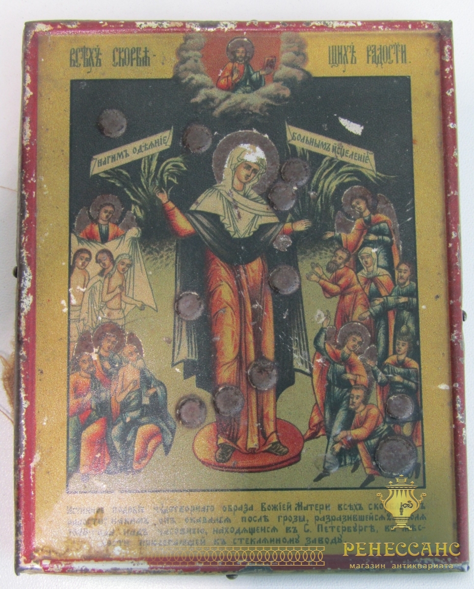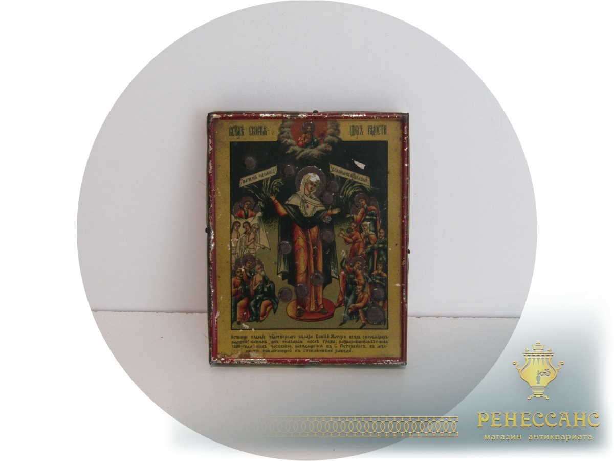 Икона старинная «Всех Скорбящих Радость» №13977Жесть